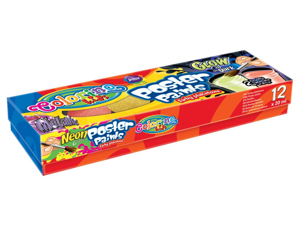 Sada temperových barev v kelímku 12 x 20ml. Sada obsahuje mix barev v několika provedeních. Svítící ve tmě, metalické, neonové.Doplňkové parametry