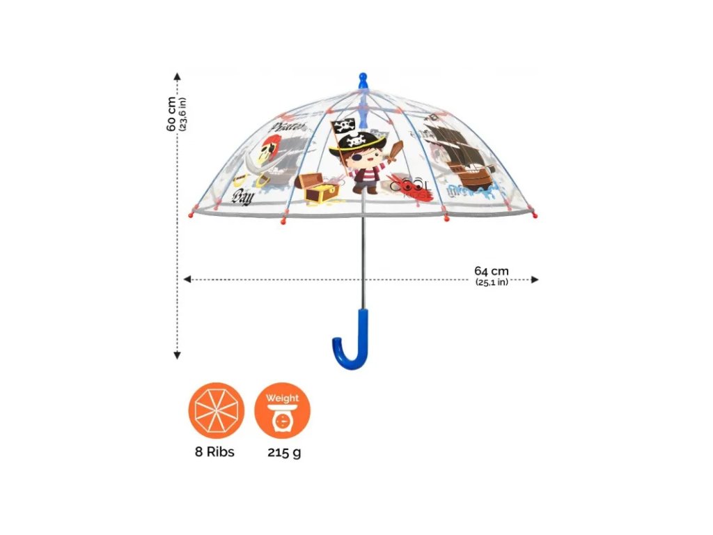 Představujeme vám Dětský reflexní deštník Piráti Transparent – vašeho nového spojence v boji proti dešťovým dnům! Nechte své děti zažít dobrodružství s tímto stylovým a zároveň praktickým doplňkem, který přidává zábavu do každého ošklivého počasí. Bezpečnost vašich dětí je naší nejvyšší prioritou. S reflexními okraji, které svítí při osvětlení automobilovými světly, tento deštník zajišťuje, že vaše děti budou vždy viditelné a bezpečné na cestách.• manuální otevírání, bezpečný mechanismus proti přivření prstíků