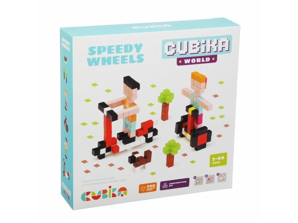 CUBIKA je nová značka dřevěných hraček vyrobených pouze z ekologicky pěstovaného dřeva s velmi precizním opracováním a líbivým designem. Pixel "Rychlá kola" - dřevěná 3D stavebnice 200 kostiček je tematická kreativní sada, která umožňuje z kostiček o velikosti 1 x 1 cm poskládat vyobrazený motiv na krabici. Jednotlivé barevné kostičky se k sobě lepí pomocí malých oboustranných lepících koleček dle přiloženého návodu. Sortiment hraček značky CUBIKA pomáhá dětem rozvíjet především senzomotorické schopnosti a dovednosti, logické myšlení, kreativitu, představivost a různé poznávací znalosti. Hračky jsou vyrobeny z nejkvalitnějšího javoru a buku a k barvení se používají též vysoce kvalitní barvy na vodní bázi, které jsou naprosto bezpečné pro děti a nemají žádný zápach. Všechny výrobky této značky mají německý certifikát TÜV a jsou vyrobeny dle evropské normy pro bezpečnost hraček EN 71. Nevhodné pro děti do 7 let. Vyrobeno v Evropě.Doplňkové parametry