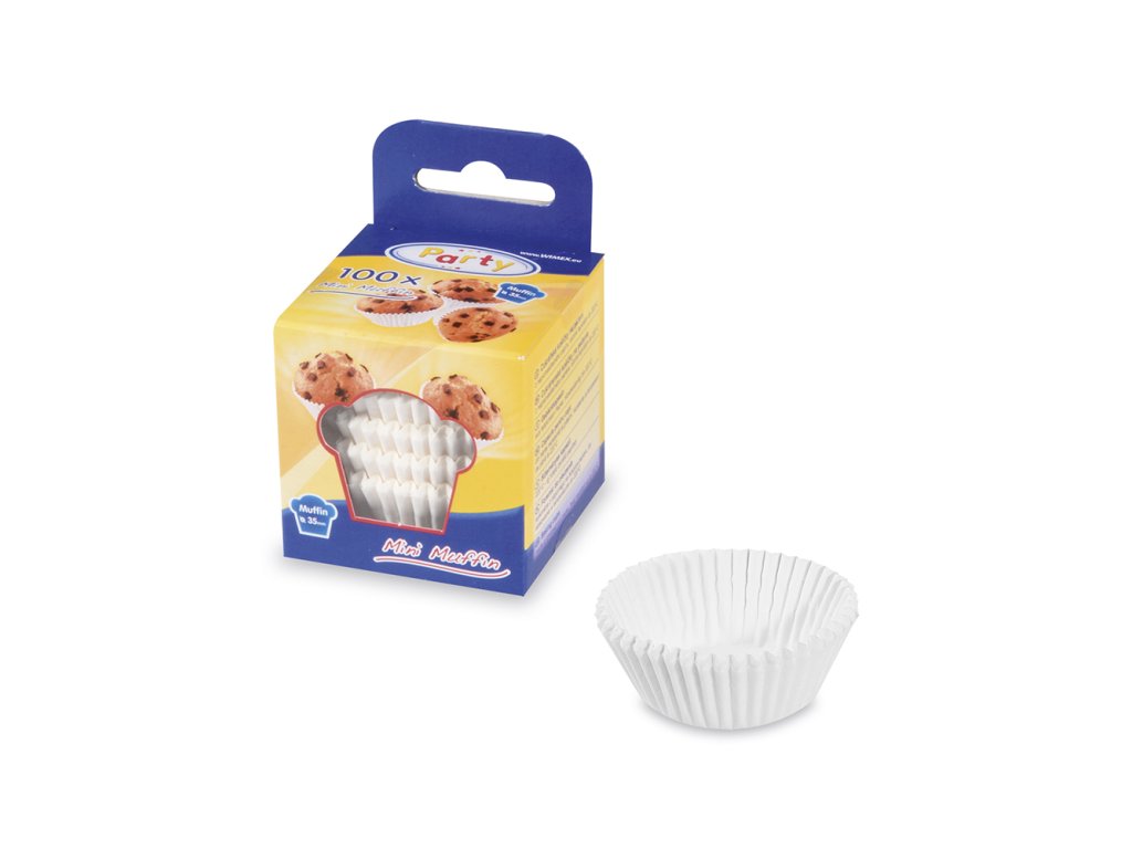 Cukrárenské košíčky biele, vhodné na pečenie do 220°C; priemer 35 mm, výška 20 mm; dodávané v papierovom boxe po 100 ks.Doplňkové parametry