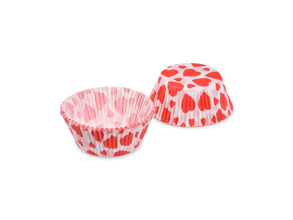 Cukrárenské košíčky červené srdiečka. Priemer 50 mm, výška 30 mm. 1 balenie = 40 ks.Doplňkové parametry