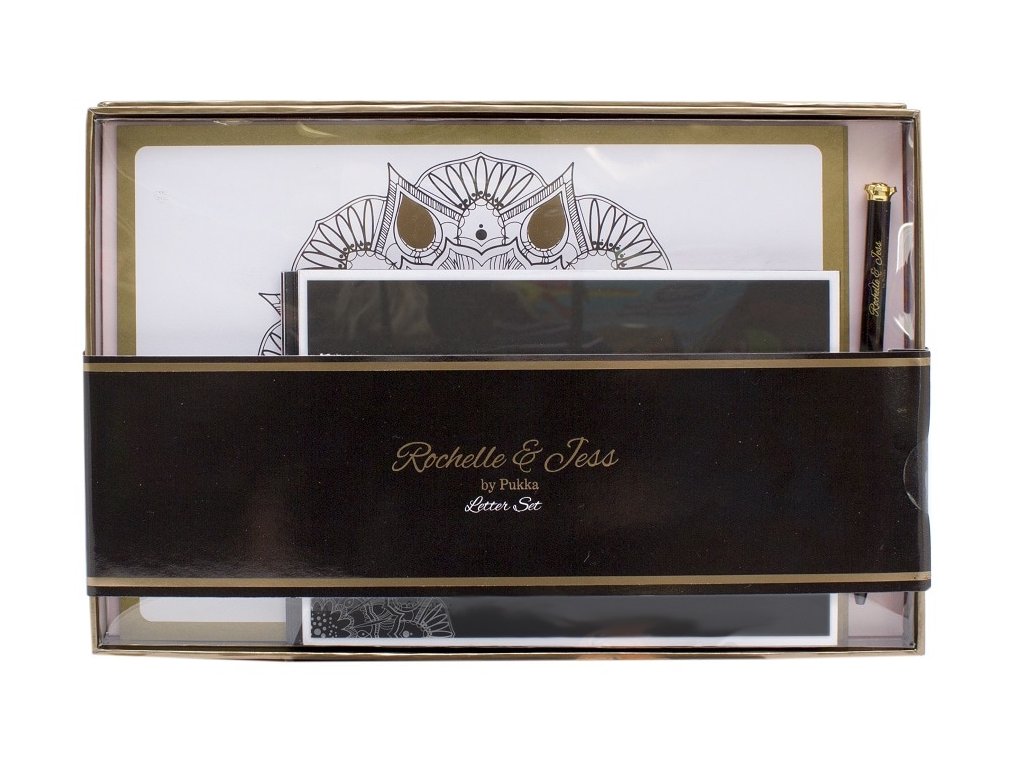 Exkluzivní dárková dopisní / psací souprava je originálním dárkem pro Vaše blízké a přátele. Sada obsahuje: obálky o rozměrech 16 x 11 cm v bílé, růžové a černé barvě (3 ks od barvy) dopisní papíry s linkami 8 mm součástí balení je také černé kuličkové peto se zlatou hlavičkou Vše je zabaleno v dárkové krabičce. Rozměry výrobku: 26 x 17 x 6 cm Obchodní informace: - výrobce: Pukka Pad, Velká Británie - kolekce: Rochelle Jess - výhradní zastoupení pro ČR: Reas-Pack s.r.o.Doplňkové parametry