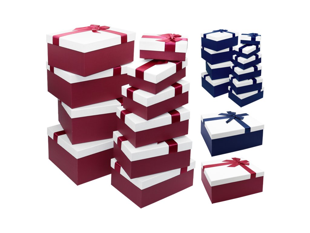 Luxusné darčekové krabice s farebnou stuhou /mašľou (tmavo-modrá alebo bordová) sada 10 ks.