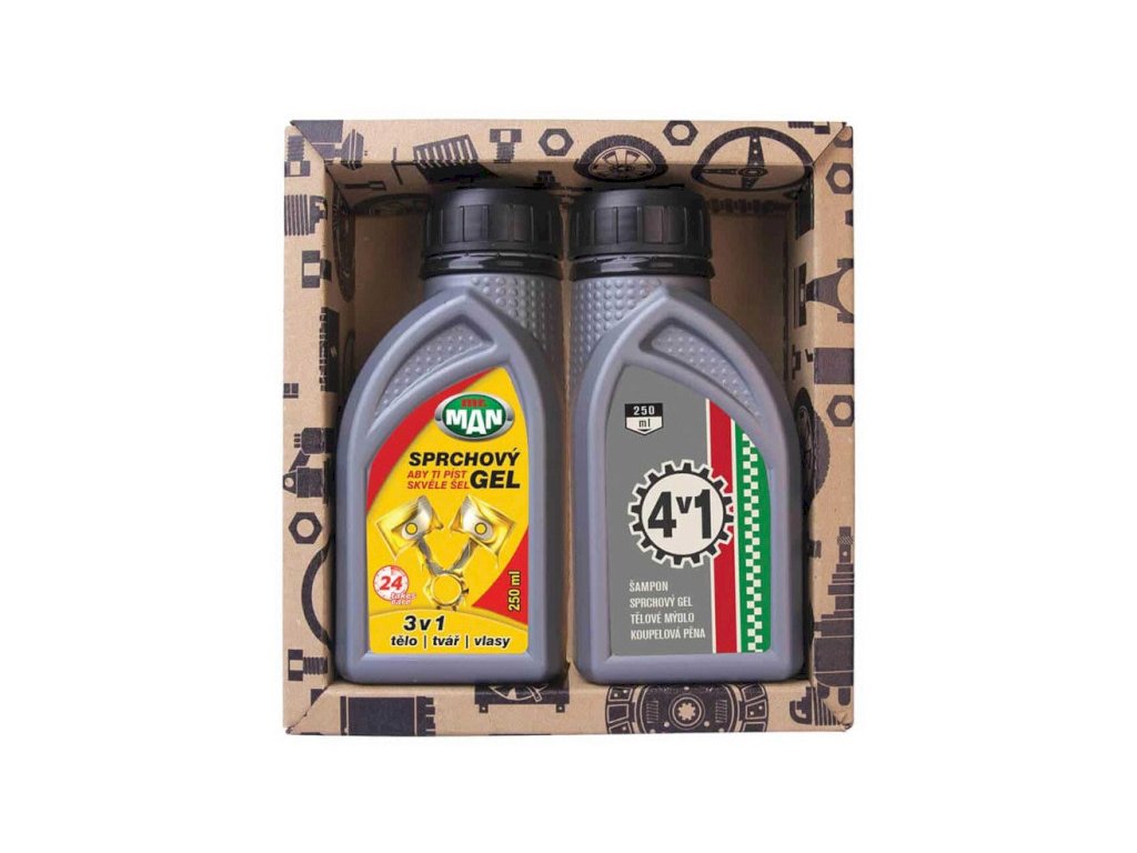 Dárkový kosmetický balíček obsahuje sprchový gel 250 ml „for men“ a sprchový gel 250 ml 4v1 – velice jemné pečující sprchové gely pro muže vhodné i k mytí vlasů.2x sprchový gel After sport 250 ml – velice jemný přípravek v každodenní osobní hygieny, vhodný k mytí celého těla. Díky svému složení pomáhá chránit pokožku před nadměrným vysušováním při mytí, které je šetrné a přitom účinné. Má podmanivou a moderní vůni, která osvěžuje a zanechává příjemný pocit. Je vhodný pro použití zejména při sportovních aktivitách.Doplňkové parametry