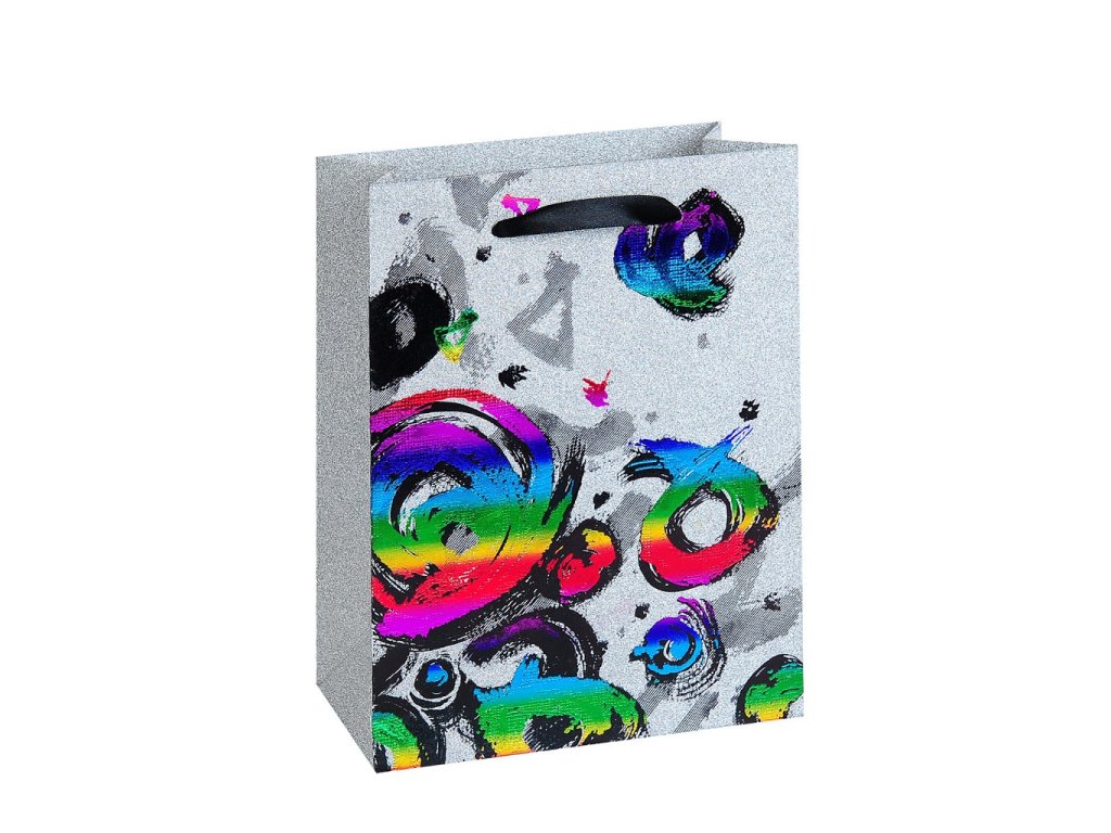 Dárková taška s barevným potiskem na stříbrném podkladu. Rozměry : 18 x 9 x 23cm Balení : 10ks Cena za 1ksDoplňkové parametry