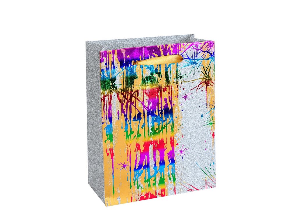 Dárková taška s barevným potiskem na stříbrném podkladu. Rozměry : 18 x 9 x 23cm Balení : 10ks Cena za 1ksDoplňkové parametry