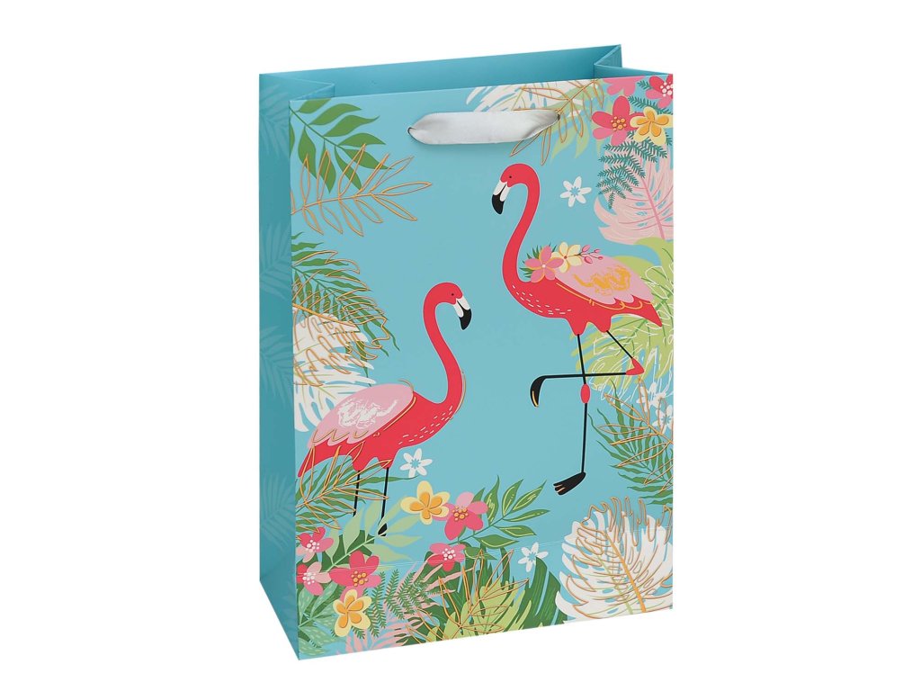 Dárková taška s motivem plameňák na modrém podkladu. Rozměry : 22,5 x 10 x 33,5cm Balení : 10ks Cena za 1ksDoplňkové parametry