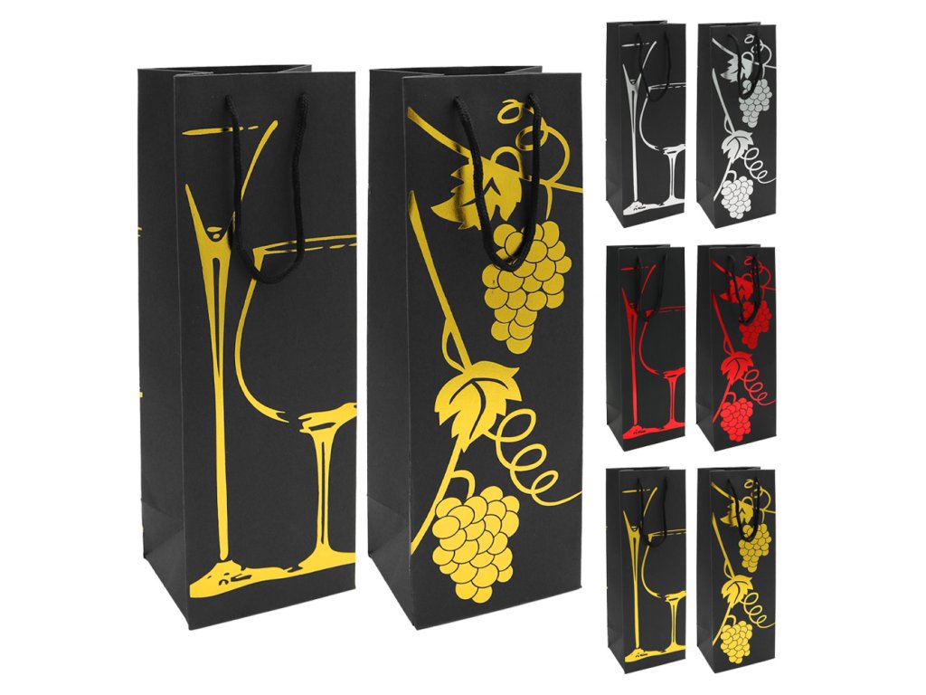 Dárková taška na láhev, velikost 12x10x35 cm (mix 3 barev /vzorů)