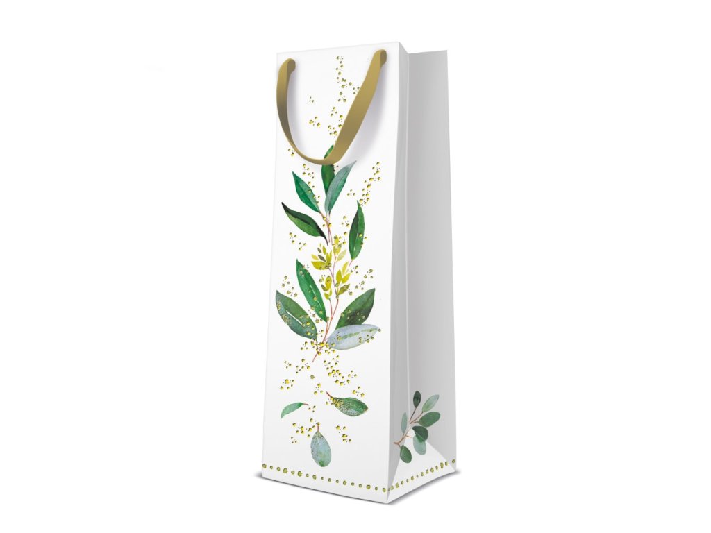Dárková taška na láhev - Golden Eucalyptus 12x10x37 cm