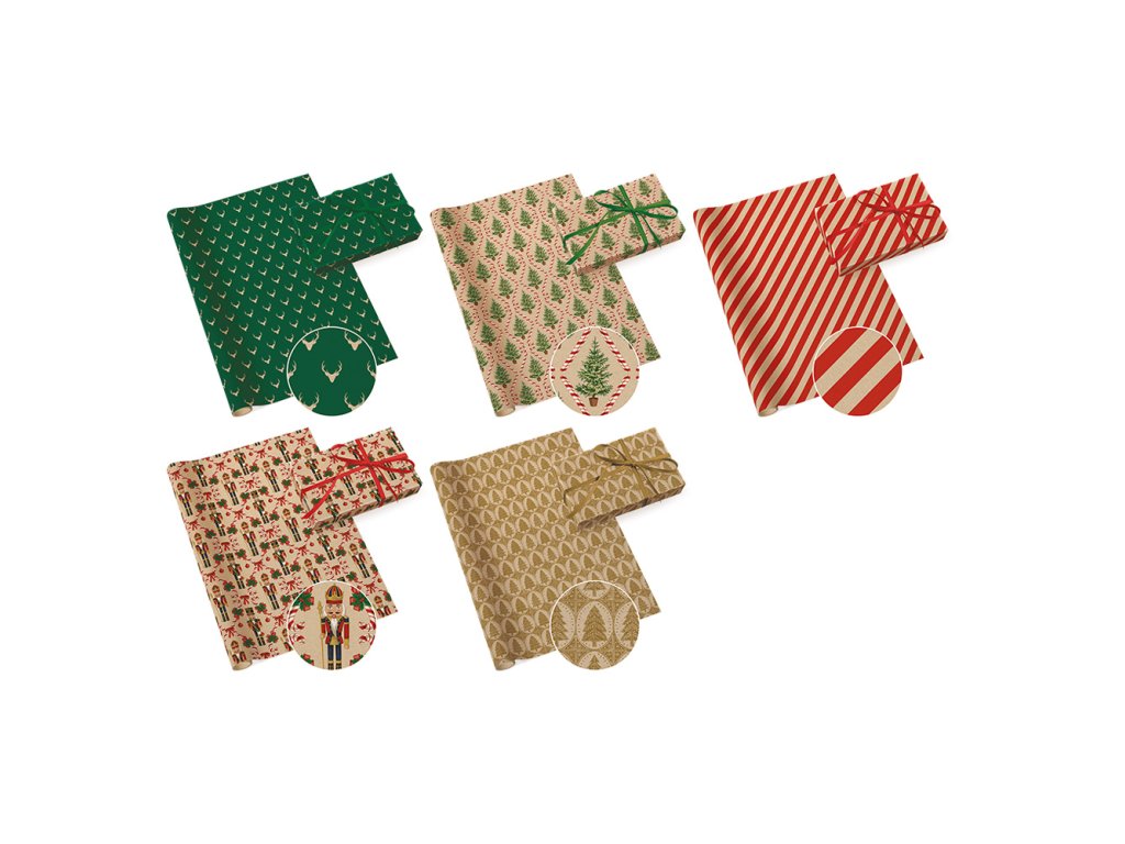 Dárkový papír 70 x 200 cm - Kraft 8 (mix 5 vánočních vzorů)