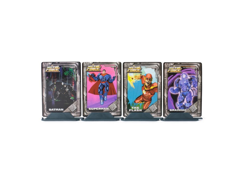 Rozpoutejte epické bitvy se sběratelským balíčkem Metal Force Brainiac vs. Batman, Superman a Flash! Figurka Brainiac s výškou téměř 30 cm je připravena ovládnout jakékoli herní nebo výstavní prostředí díky mnoha pózovatelným funkcím. K tomuto impozantnímu padouchovi se přidávají exkluzivní postavy Batmana, Supermana a Flashe, z nichž každá je ztvárněna s výrazným kovovým povrchem, který zdůrazňuje jejich hrdinské postavy a ikonické obleky. Tyto figurky ožívají díky neuvěřitelným možnostem pózování, což fanouškům umožňuje znovu vytvořit intenzivní rivalitu a dynamické hrdinství z klasických DC komiksů. Sada obsahuje exkluzivní kovové sběratelské karty, které vylepšují zážitek z vyprávění a poskytují fanouškům informace o schopnostech a historii každé postavy. Tento sběratelský balíček je ideální jak pro mladé fanoušky, tak pro zkušené sběratele – nejenže podporuje nápaditou hru, ale také vyzývá k zapojení do bohatých příběhů ze světa DC. Darujte tuto sadu, která inspiruje a potěší každého mladého hrdinu nebo sběratele a sledujte, jak rozšiřuje svá dobrodružství o další figurky z kolekce Metal Force. Nenechte si to ujít – přidejte tento epický balíček do své sbírky ještě dnes a bitva může začít!Doplňkové parametry