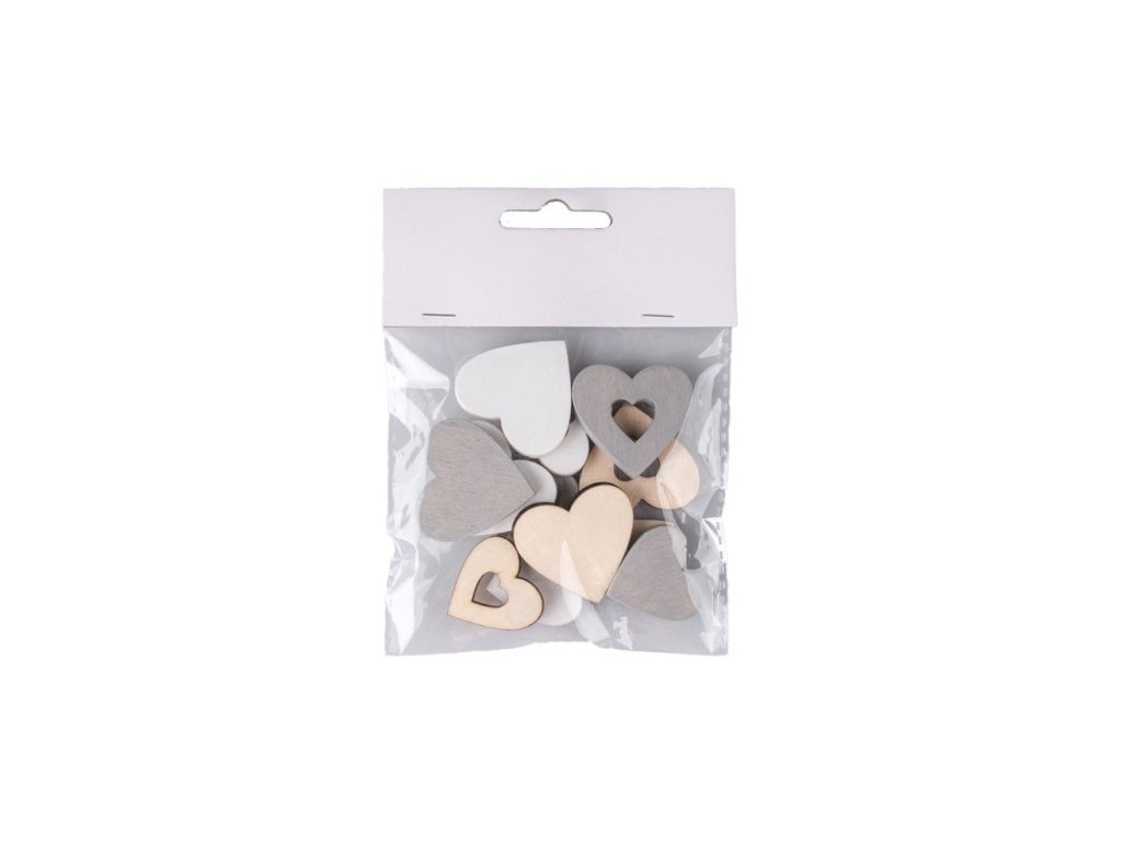 Dekorace dřevo 12 ks 35x35 mm srdíčko, bílá, přírodní, šedá