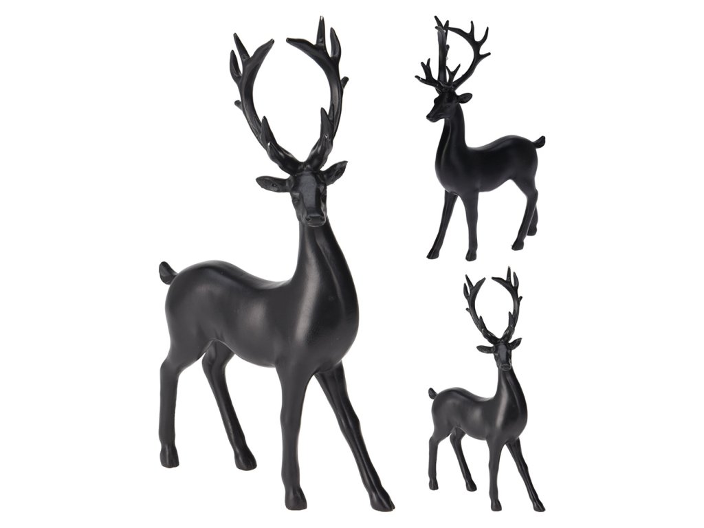 Stojící jelen v matné černé barvě (2 pózy).
