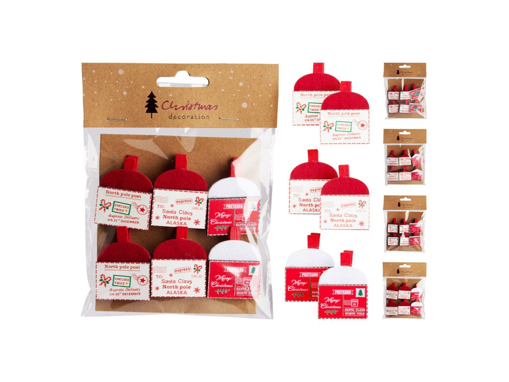 Obálka od Santa Claus na dřevěném kolíčku (sada 6 ks v balení).