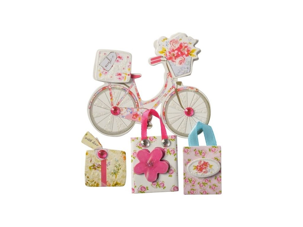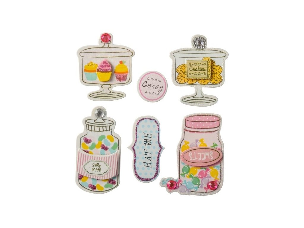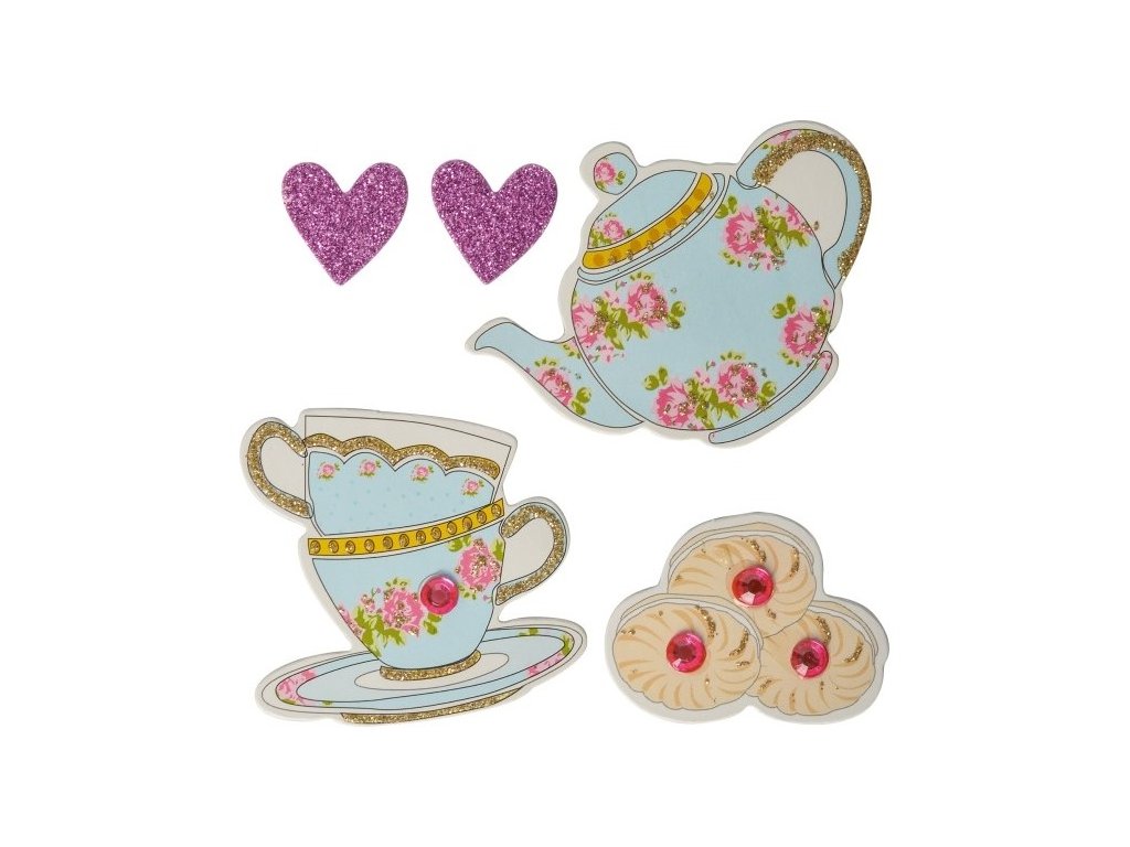 Balení obsahuje mix samolepicích dekorací - Motýli, Květiny, Sladkosti, Šálky, Šití a Dárky.