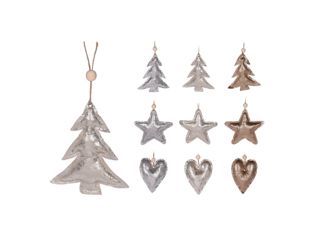 Dekorace vánoční z textilu (3 barvy / 3 tvary)