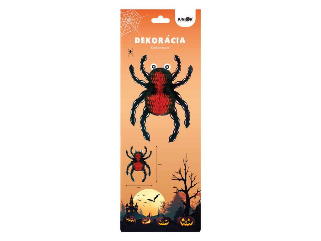 Dekorace Velký papírový pavouk, závěsný, 23 x 33 cm, Halloween