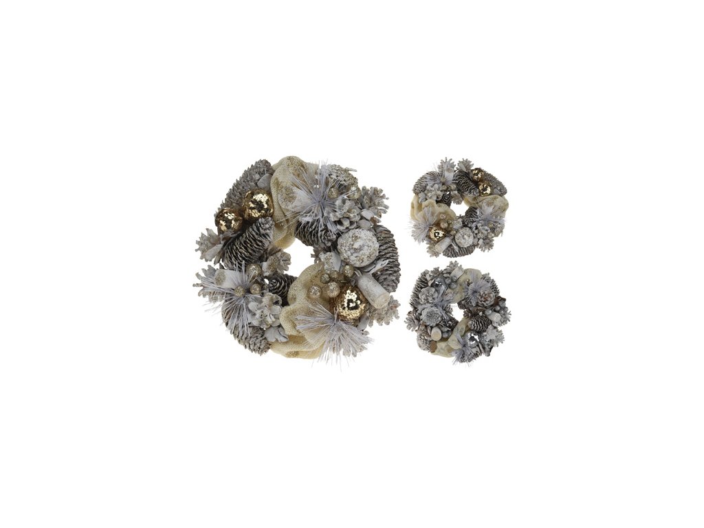 Dekorace - Věnec se šiškami 25 cm, zlatý, mix / 1ks