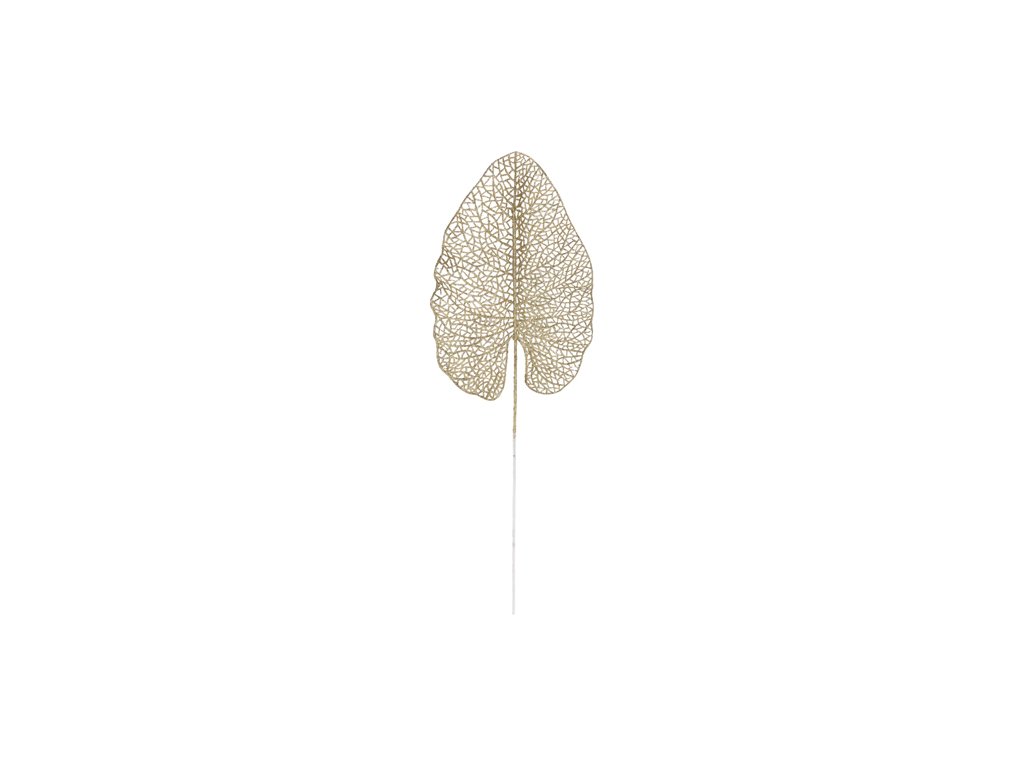 Vánoční dekorace větvička / list na špejli - barva glitter zlatá. Ideální pro tvoření svátečních aranžmá, jako doplněk do vázy. Délka větvičky 67 cm. Materiál: pevný PP.Doplňkové parametry