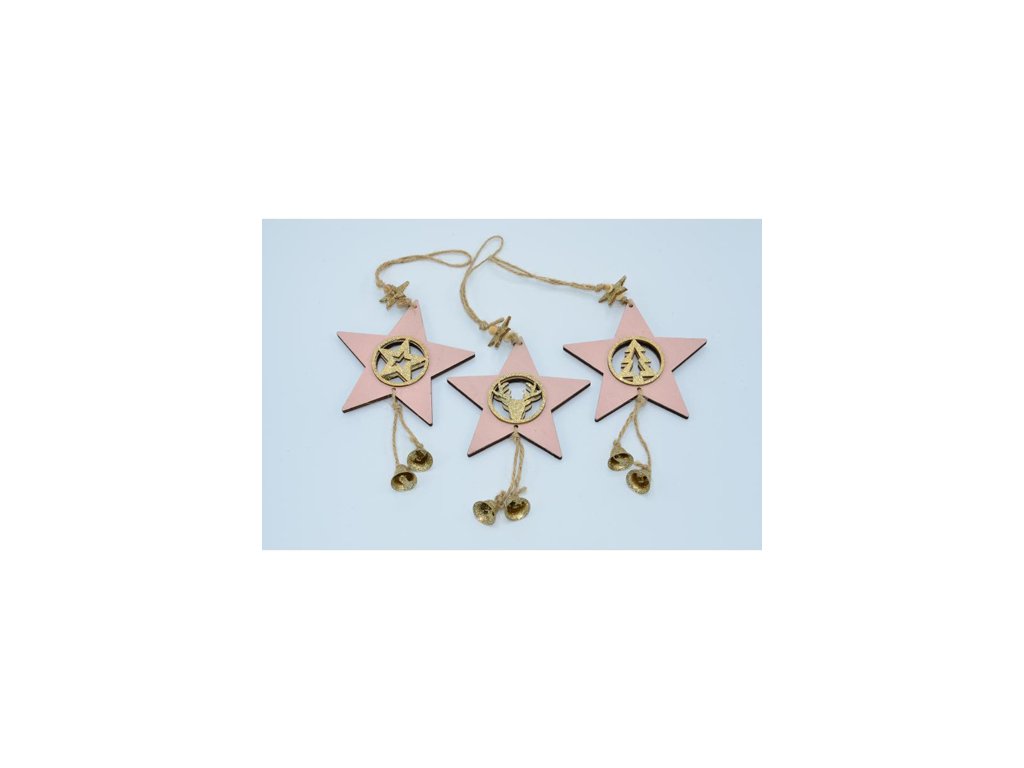 Dekorace závěsná - Hvězda dřevěná růžová 11 cm, mix / 1ks