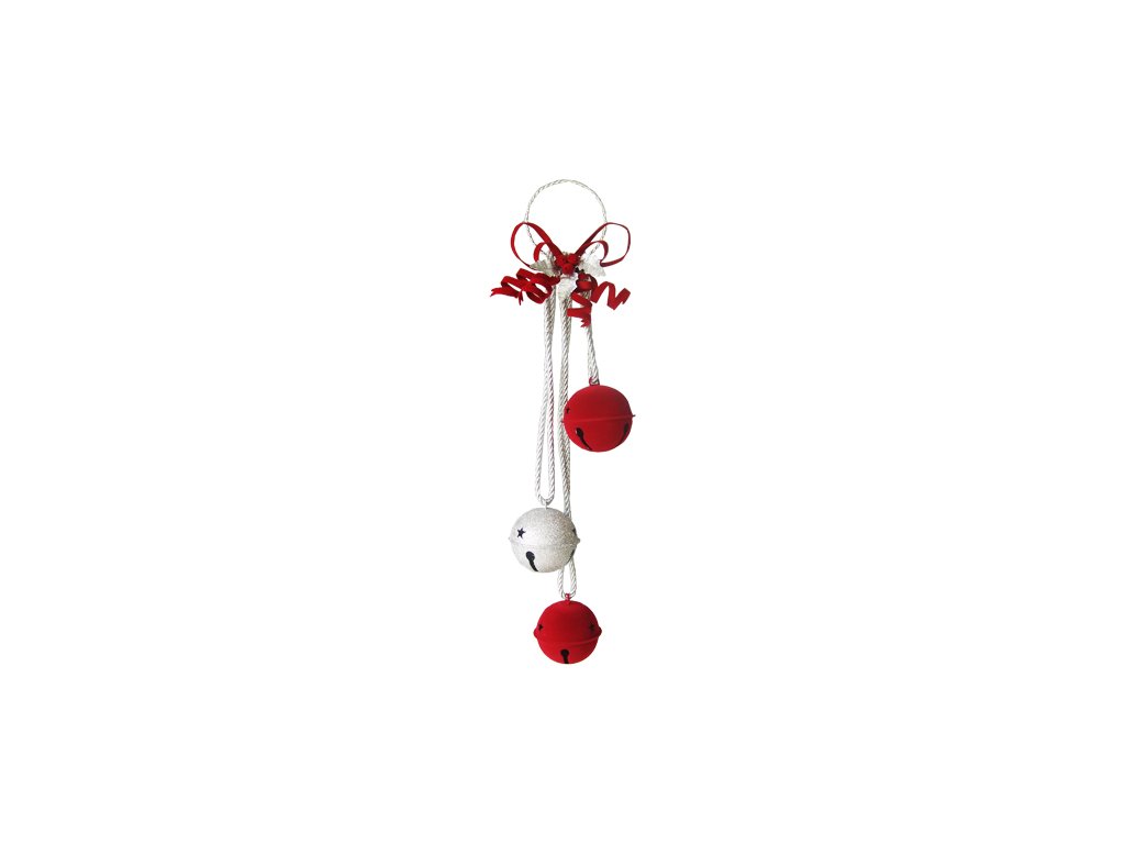 Dekorace závěsná - Rolnička červeno / stříbrná 60 cm, 1ks