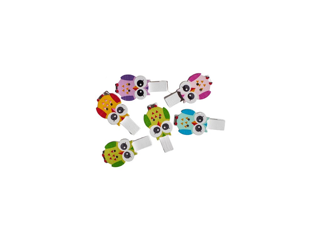 Dekorace kolíčky - štipce, mix barev se sovou , 6 ksDoplňkové parametry