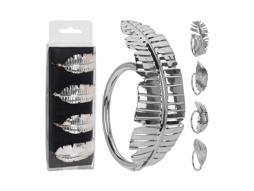 Dekorační obroučky na ubrousky - List stříbrný, sada 4 ks