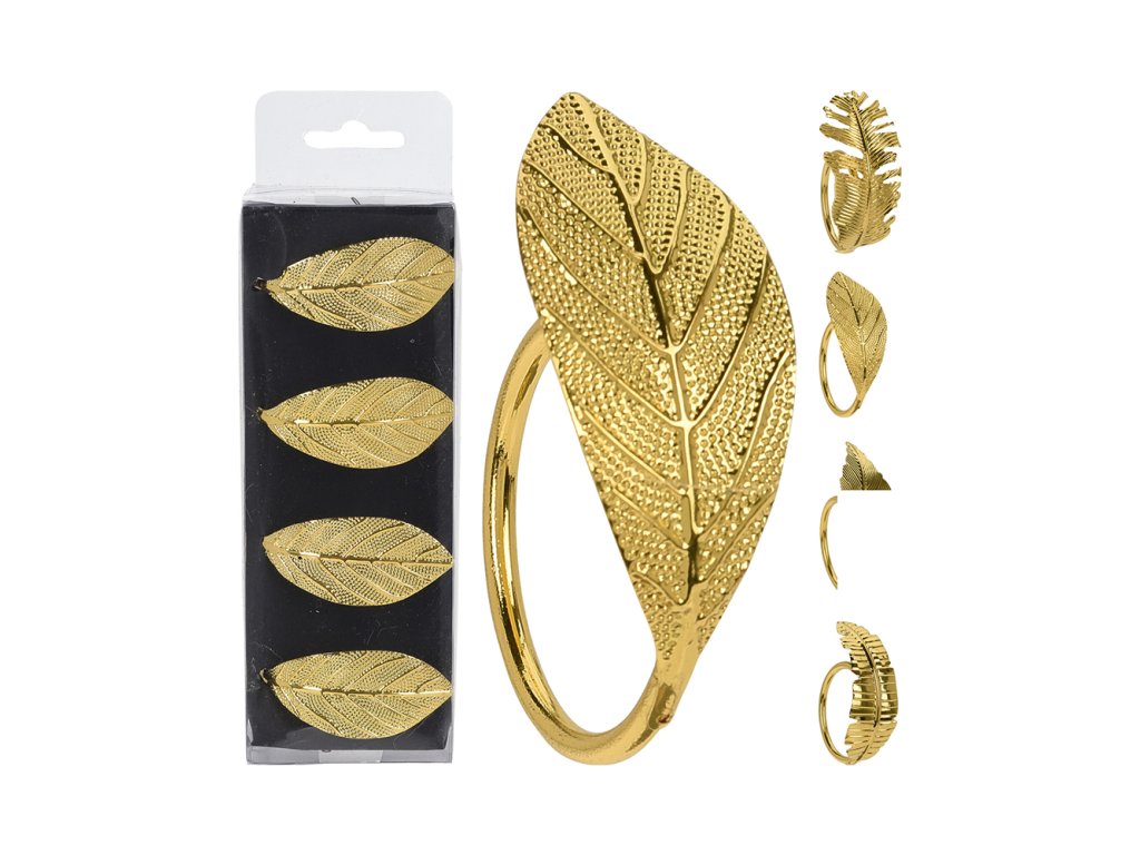 Dekorační obroučky na ubrousky - List zlatý, sada 4 ks