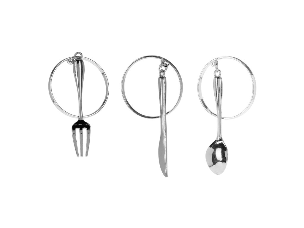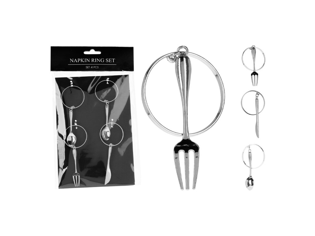 Dekorační obroučky na ubrousky v designu příboru - stříbrné, sada 4 ks
