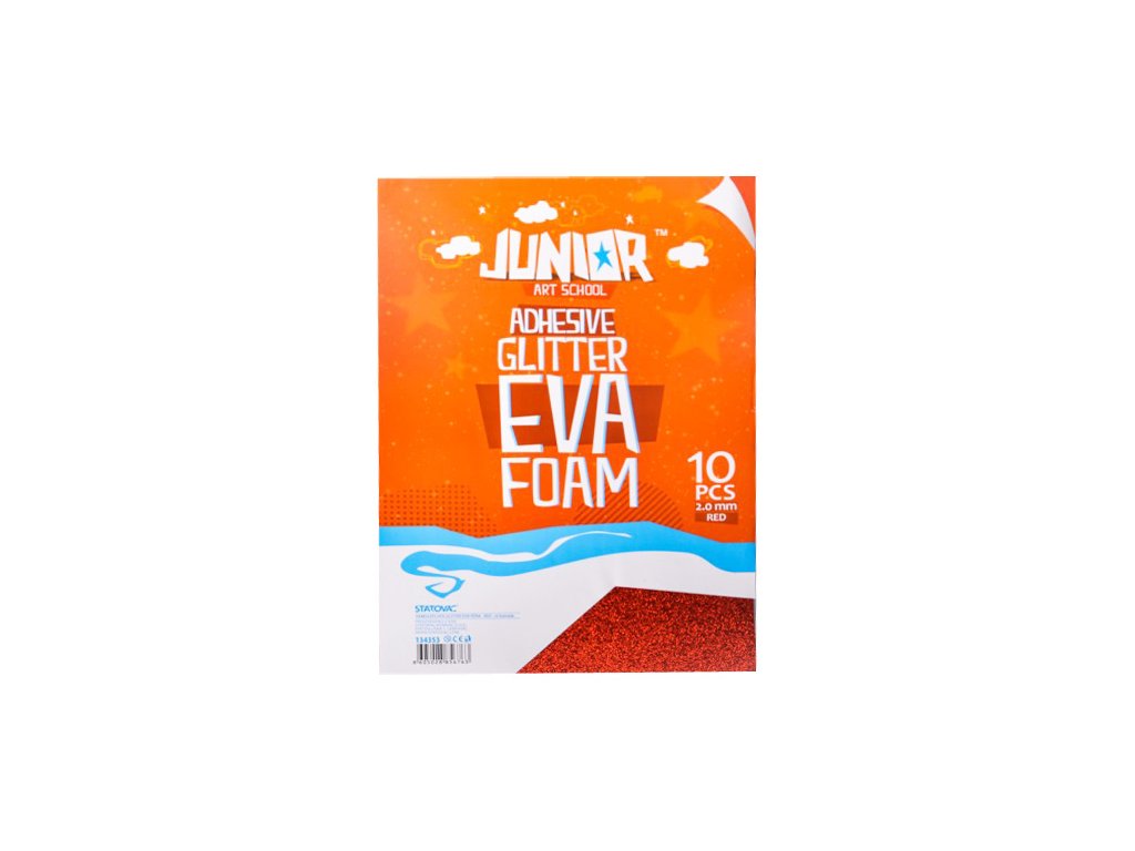 Dekorační pěna A4 EVA 10 ks červená samolepicí glitter 2,0 mm