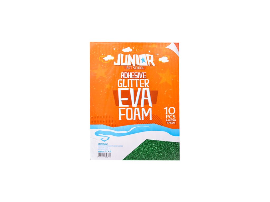 Dekorační pěna A4 EVA 10 ks zelená samolepicí glitter 2,0 mm