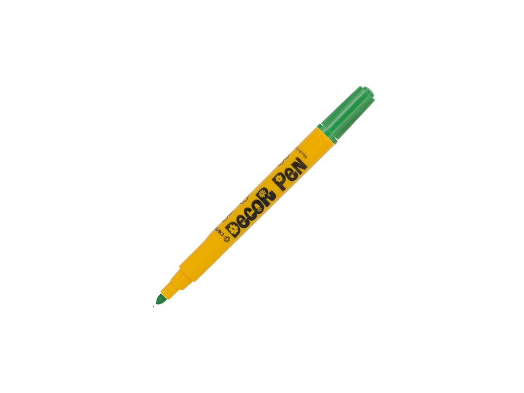 Dekorační popisovač Decor Pen, určený k dekoraci různých materiálů (lakový papír, kov, sklo, fólie, keramika, kraslice, kámen). Světlostálý pigmentový inkoust na vodní bázi. Stopa písma je výrazně sytá, permanentní, světlostálá. Po dokonalém zaschnutí (min. 4 hod.) Se stopa stává odolnou vůči otěru a na porézních površích i vodě. Z neporézních materiálů lze smýt vodou se saponáty. Šíře stopy je 1,5 mm. Skladovat ve vodorovné poloze. Barva: zelená.Doplňkové parametry