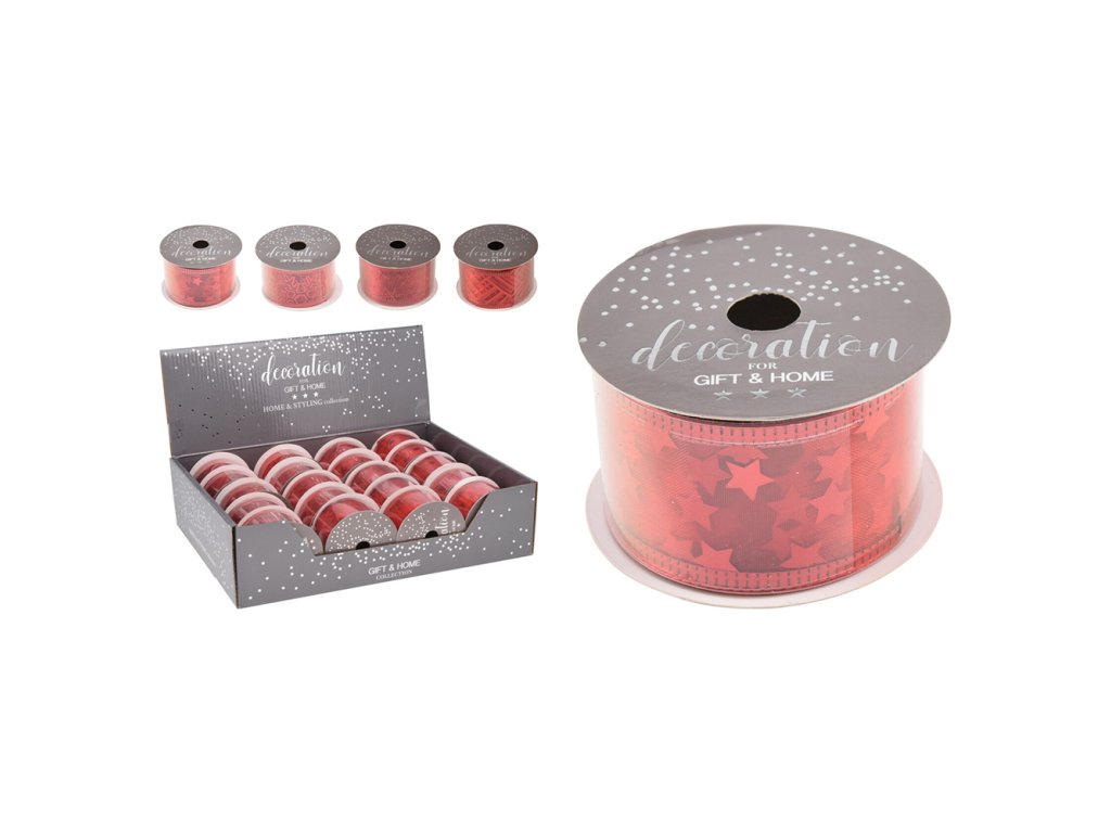 Dekorační stuha 38x2700 mm - červená (4 vzory)