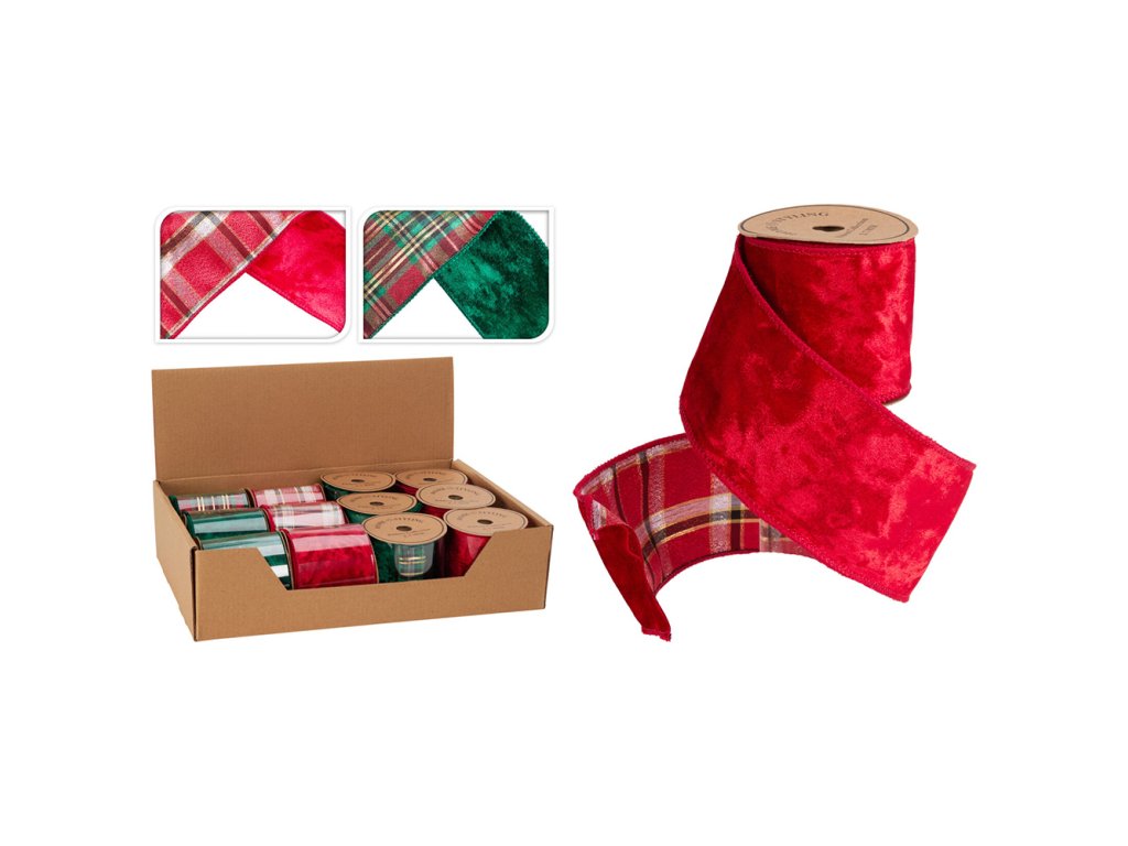 Stuhy v červené/zelené barvě, potištěné káro vzory, vhodné pro balení dárků, jako dekorace apod.