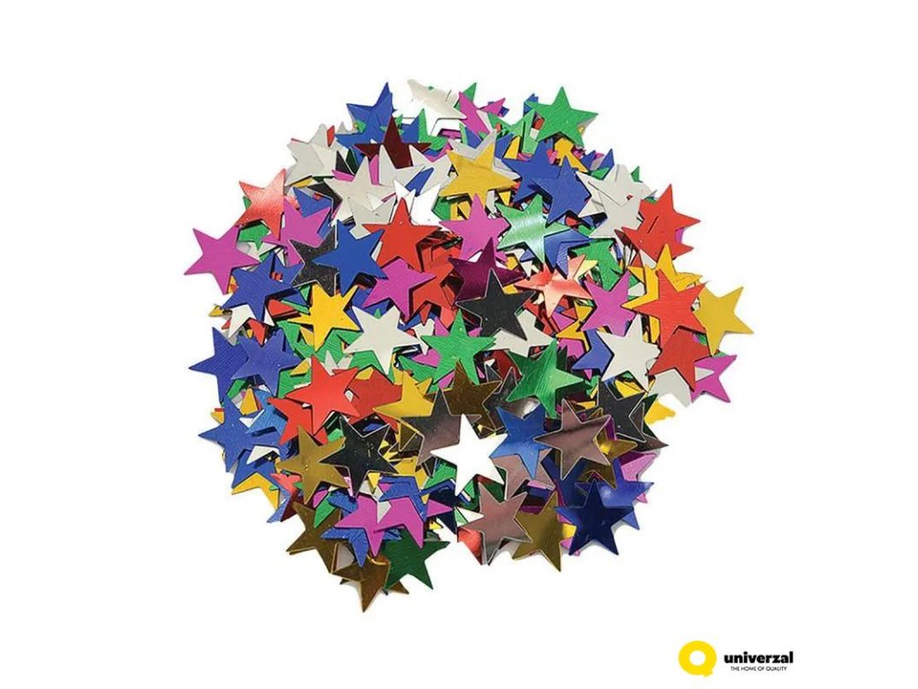 Kreativní konfety ve tvaru hvězd. Rozměry 15 x 15 mm. Balení obsahuje hvězdičky různých barev. Hvězdičky lze lepit na různé materiály. Ideální pro školy, tvořivé dílny a školky. Hmotnost balení je 14g.Doplňkové parametry
