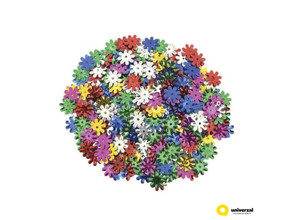 Kreativní konfety ve tvaru kytiček. Rozměry 12 x 12 mm. Balení obsahuje kytičky různých barev. Kytičky lze lepit na různé materiály. Ideální pro školy, tvořivé dílny a školky. Hmotnost balení je 14g.Doplňkové parametry