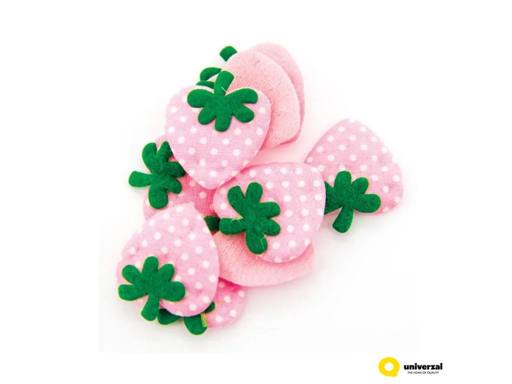 Ozdobte jedinečný kus oblečení, přání, pozvánku, narozeninový balíček nebo jakýkoli jiný předmět z vaší fantazie. Jahody lze nalepit nebo přišít na různé materiály dle fantazie. Jsou vyrobeny z textilu. Rozměr 36 x 33 mm. Balení 10 ks. Ideální pro školy, tvořivé dílny a školky.Doplňkové parametry