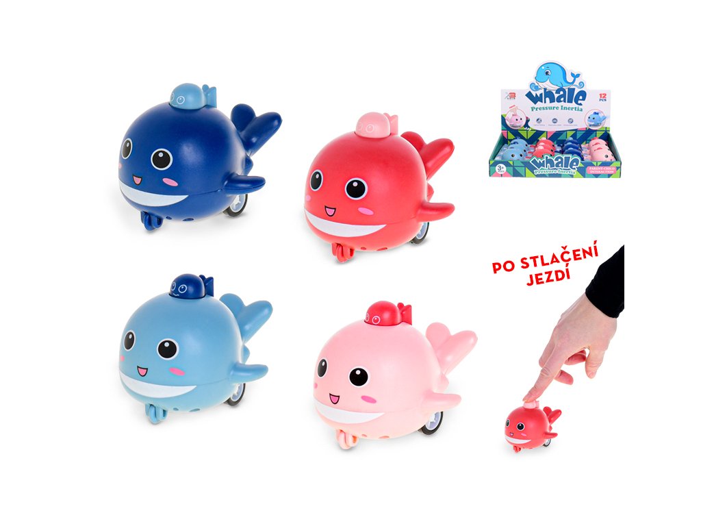 Delfín 8cm po stlačení jezdící 4 barvy 12ks v DBX