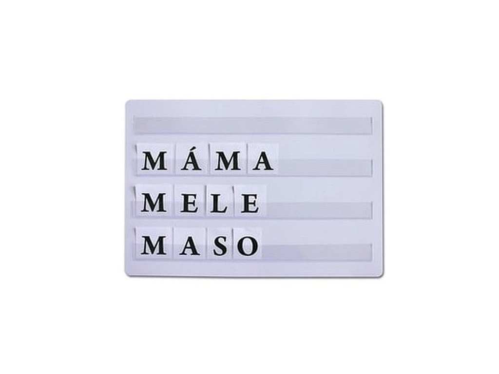 Plastová sázecí tabulka na skládání slov. Ideální pomůcka pro prvňáčky při čtení.Doplňkové parametry