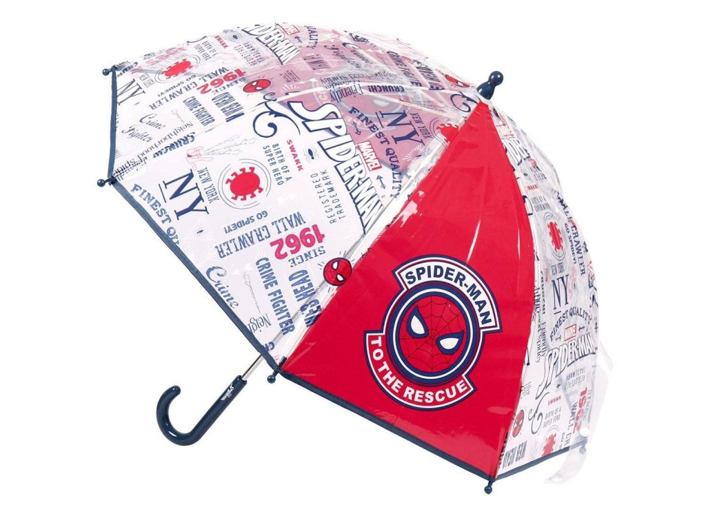 Průhledný deštník Spiderman. Poloměr 48 cm, délka 69 cm. Oficiální licence, Cerda.Doplňkové parametry