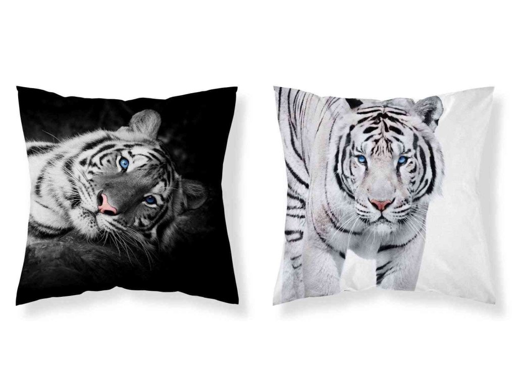 DETEXPOL Povlak na polštářek Tygr černobílá micro 40/40 Materiál: 100% Polyester Rozměr: 1x 40/40 cm Povlak na polštářek je vyroben ze 100% Polyesteru, je příjemný na omak, povlak má z každé strany jiný obrázek viz. Foto, zapínání na zipDoplňkové parametry