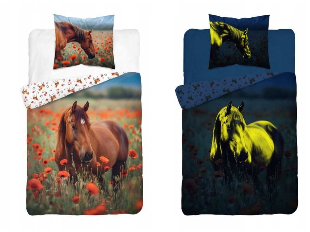 - Originální svítící povlečení DETEXPOL Kůň ve vlčím máku (140x200 + 70x80 cm). 100% bavlna, certifikováno. Magický glow efekt, který potěší každé dítě. Objednejte ihned! 🐴✨