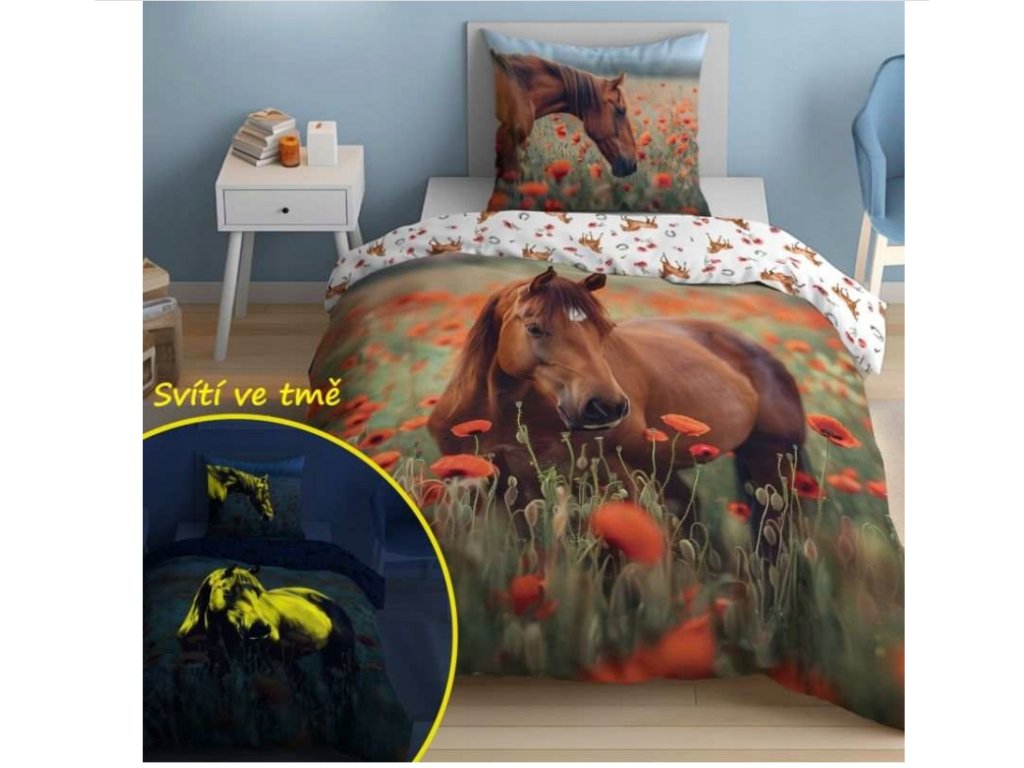 - Svítící povlečení DETEXPOL Kůň ve vlčím máku 140x200 bavlna | Glow in the dark