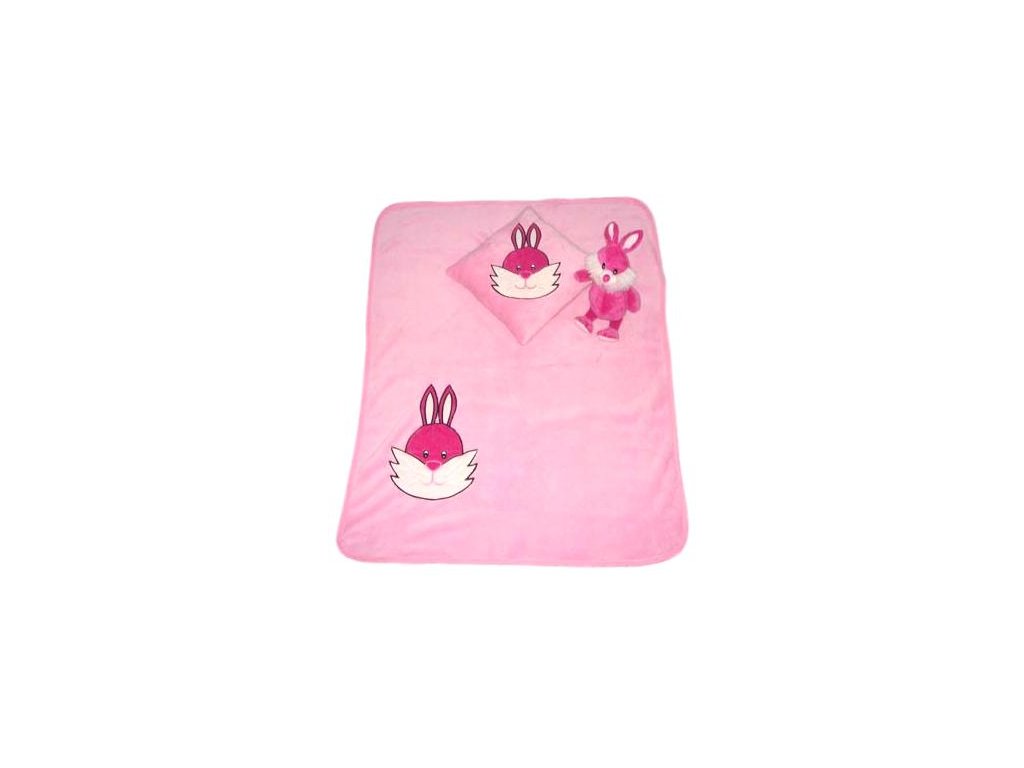 Dětská 3 dílná sada -polštářek, deka, hračka - králík