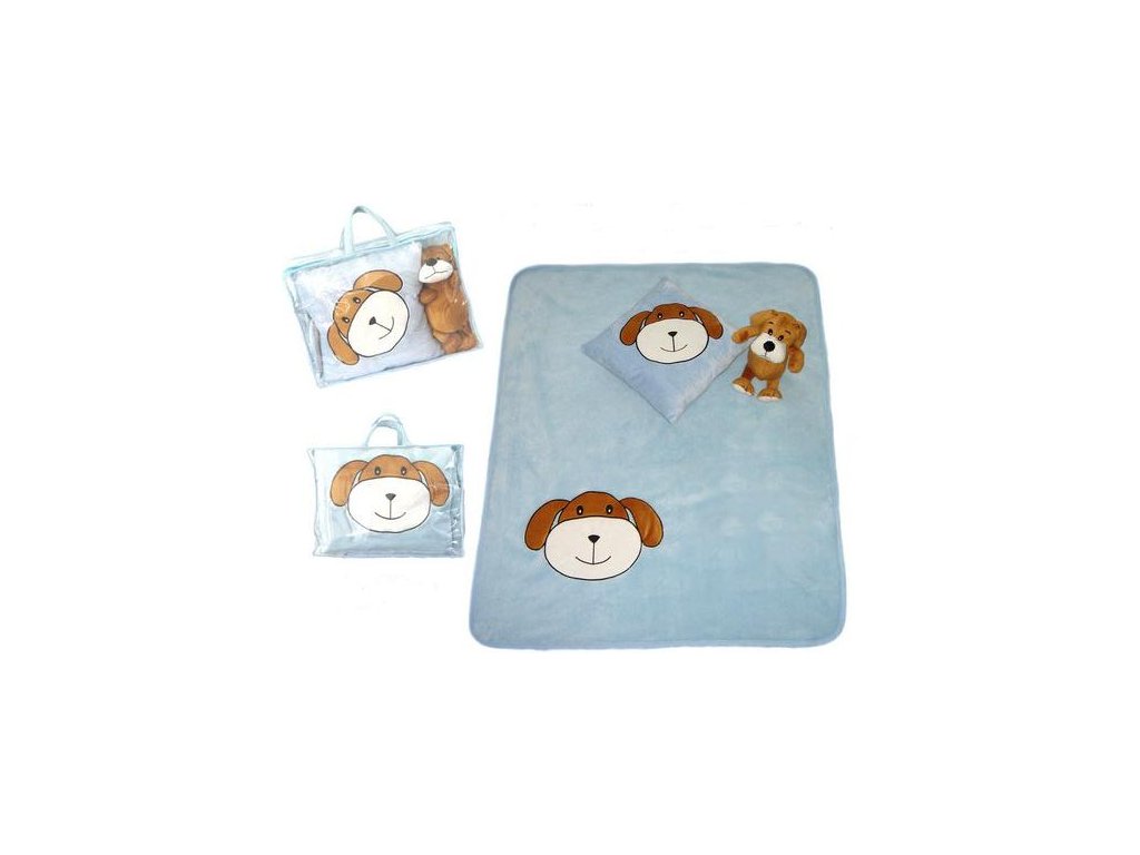 Dětská 3 dílná sada -polštářek, deka, hračka - pes