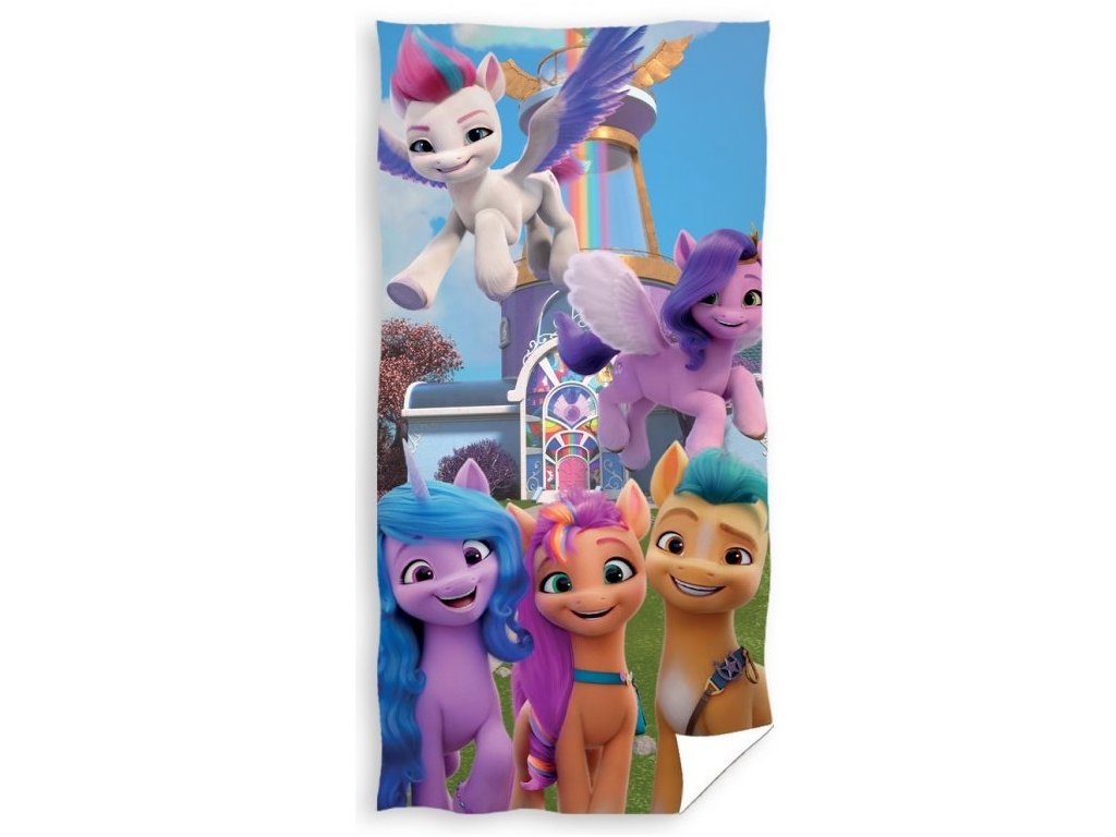 Na lícní straně froté osušky jsou poníčky z magické pohádky My Little Ponny Nová Generace
