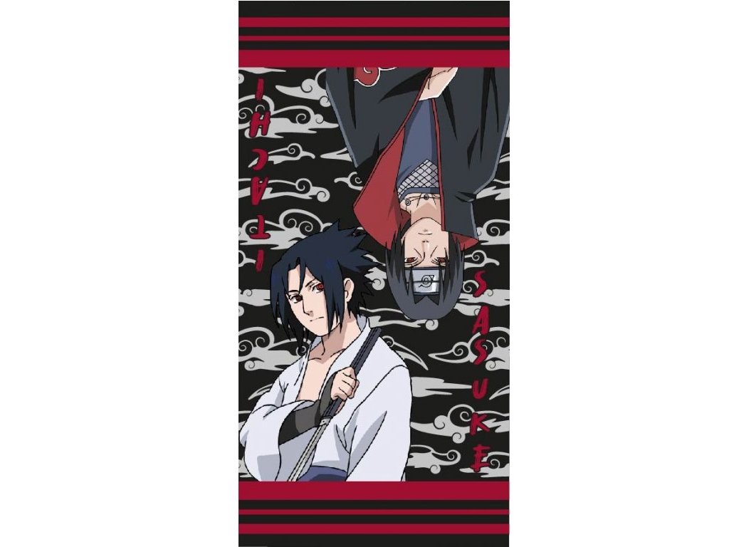 Na osušce jsou dvě postavy z oblíbené japonská šónen mangy a to Itachi Uchiha a Sasuke Uchiha