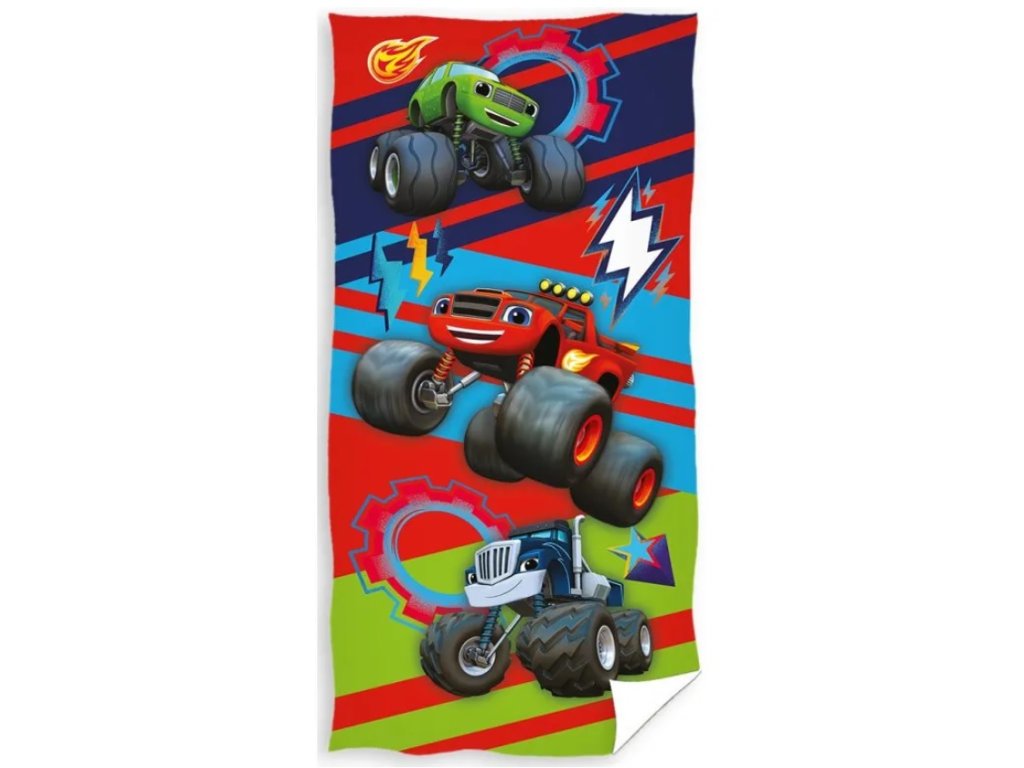 Dětská osuška Plamínek a Čtyřkoláci Teď to Rozpalme, je vyrobena ze 100% bavlny. Její rozměry jsou 70x140 cm s gramáží 300 g/m². Osuška nadchne všechny malé i velké fanoušky oblíbené animované pohádky Blaze and the Monster Machines.