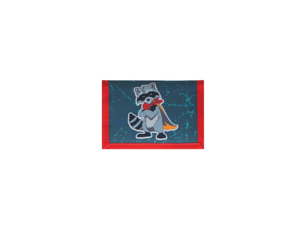Dětská peněženka se zapínáním na suchý zip. Vnitřek obsahuje: PVC okénko, kroužek na klíče, 1 vnitřní přihrádku na zip a zasouvací přihrádku, 1 vnější PVC okénko se zapínáním na zip. Rozměry: 12,5 x 8,5 cm (složené) a háček na poutko. Materiál: 100% polyester.Doplňkové parametry