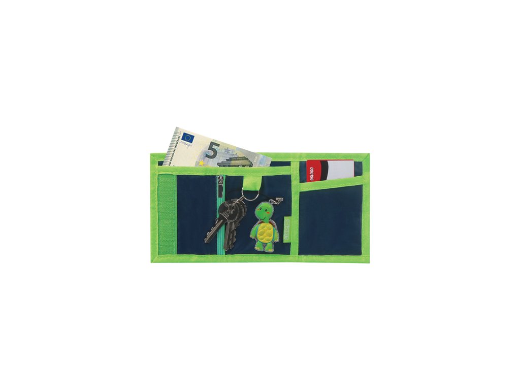 Dětská peněženka se šňůrkou a zapínáním na suchý zip. Vnitřek obsahuje: PVC okénko, kroužek na klíče, 1 vnitřní přihrádku na zip a zasouvací přihrádku, 1 vnější PVC okénko se zapínáním na zip. Rozměry: 12,5 x 8,5 cm (složené) a poutko 40 cm. Materiál: 100% polyester.Doplňkové parametry